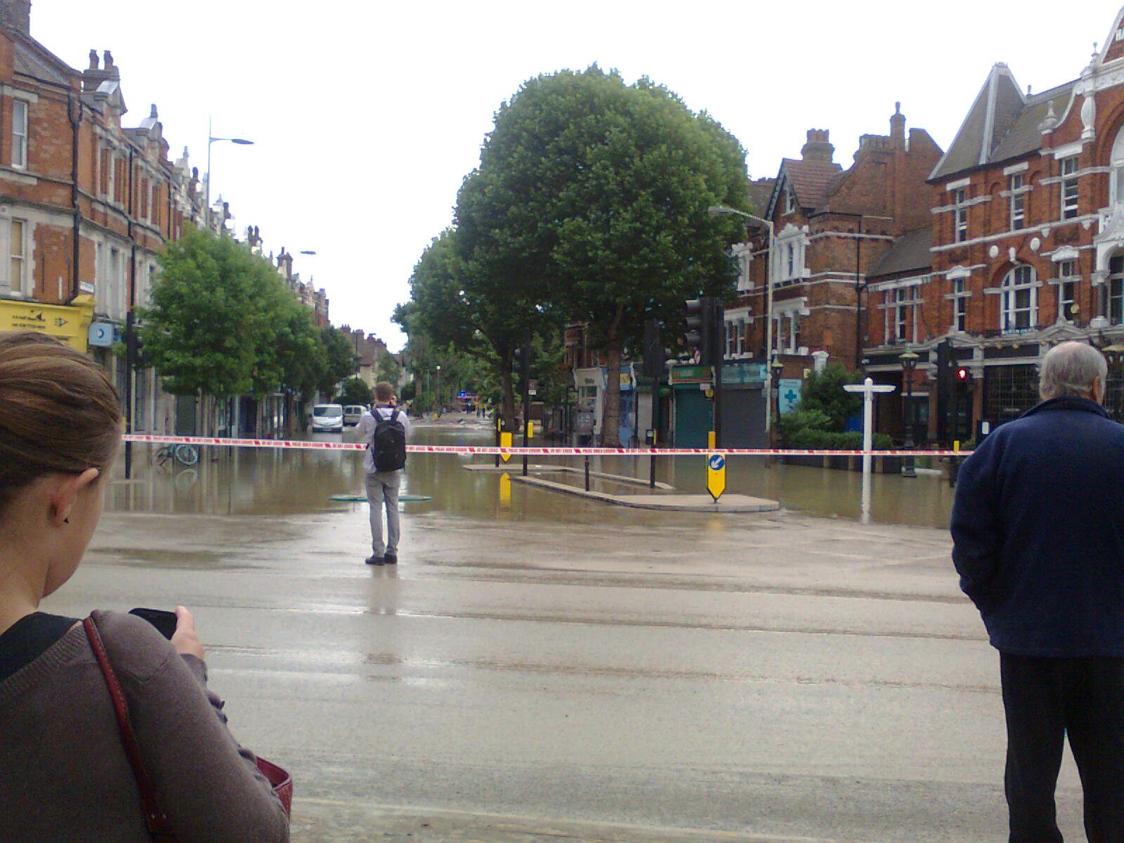 I walk, in suit and heels, and slip through the police lines (yes, Met Police can hold back floods). “Slip” being the operative word, there was mud and slime everywhere. Even walking, I had to go around the worst of it, which meant an hours walk.
