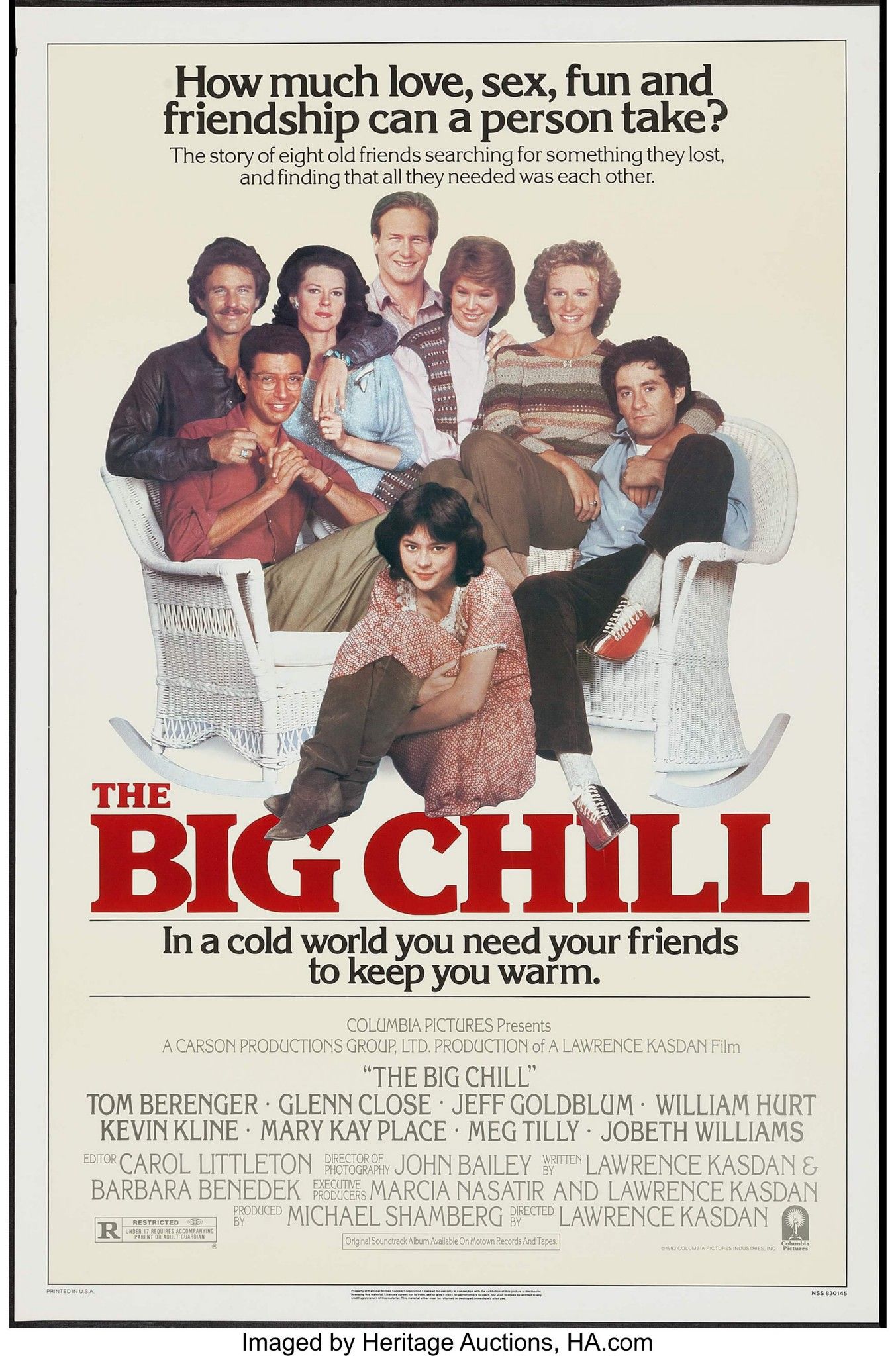 Starring: Tom Berenger, Glenn Close, Jeff Goldblum, William Hurt, Kevin Kline, Mary Kay Place, Meg Tilly, Jobeth Williams