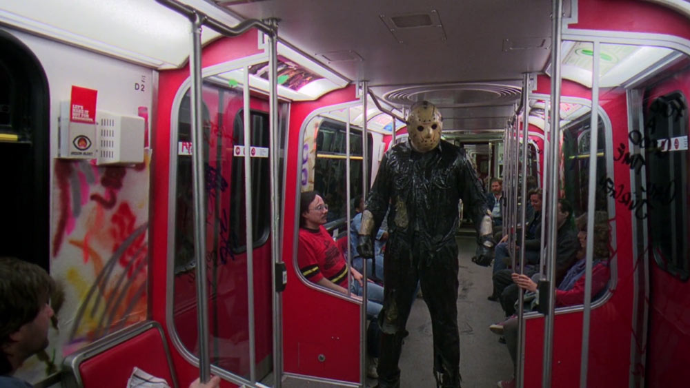I’m not proud of this, but other than the first installment, this may be my favourite entry in the franchise. It’s just so silly, so very 80’s, it’s largely shot in Vancouver, it has a dog in it, toxic waste in barrels, and at one point a kid gets punched and his head falls off. It’s hilarious. This time, a bunch of teens are celebrating graduation on a boat that’s heading to New York City, and Jason tags along, climbing aboard and slashing his way to the city while one teen has premonitions. For some reason, the boat looks like a tanker rather than a pleasure cruiser, and it has quite a different atmosphere and overall look than other Jason films, which means that it wasn’t really a fan pleasing entry. I like it anyway, it’s really stupid.