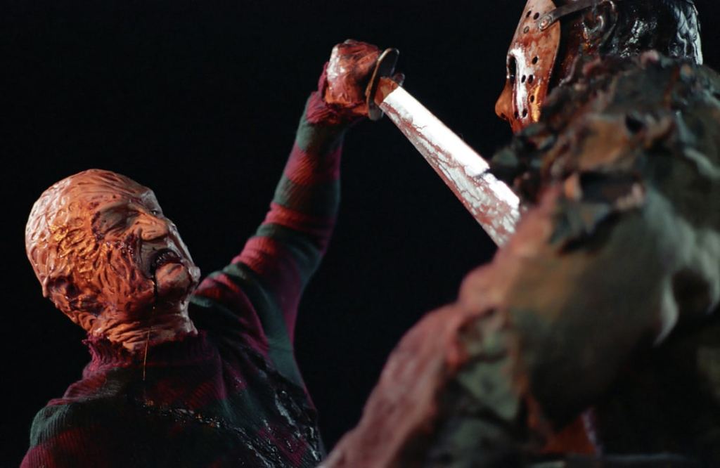 Final never means final in a horror franchise. This time, Jason is able to jump from body to body and needs to invade the body of a descendant to cement his immortality. Or something. This one has a different, more 90’s tone than the others. It references TV shows like Hard Copy and doesn’t have teens or a camp them. I mean, it’s very camp but it doesn’t have a Summer Camp. It’s actually pretty boring and things are really incoherent and seem to just happen. It feels like a film from a different franchise because most of the time, Jason is just in the body of someone else, so no hockey mask and no hulking presence. This is the weakest link for me and the cameo of the book from Evil Dead and Freddy Kruegar’s hand feel like desperate cash in’s. (Fun fact: New Line didn’t have right to “Friday The 13th” but to “Jason Voorhees” so that’s why the title doesn’t contain that phrase)